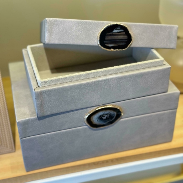 A caixa decorativa Ágata é perfeita para organizar pequenos objetos com muito estilo. Feita em material resistente e acabamento refinado, ela se destaca pelo puxador em pedra, que adiciona um toque sofisticado e exclusivo à peça. Ideal para compor aparadores, mesas de centro ou estantes, essa caixa une funcionalidade e beleza, tornando qualquer espaço mais elegante e harmonioso.